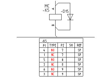 Exemple : un symbole unique compose le contact de forme C