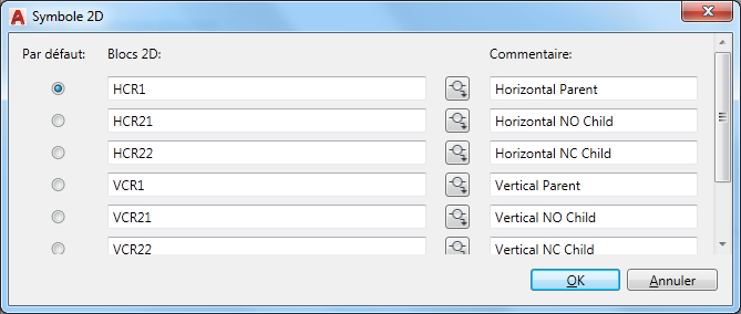 - Si la valeur de catalogue peut comporter deux symboles père, par exemple les démarreurs avant et inversés, répétez les étapes pour les champs BROCHESBOBINESPAIRES et LISTEBROCHESPAIRES.