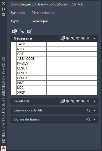 Dans l'Editeur d'attributs du générateur de symboles, notez la coche en regard de l'attribut REPERE1. Continuez à placer le reste des attributs.