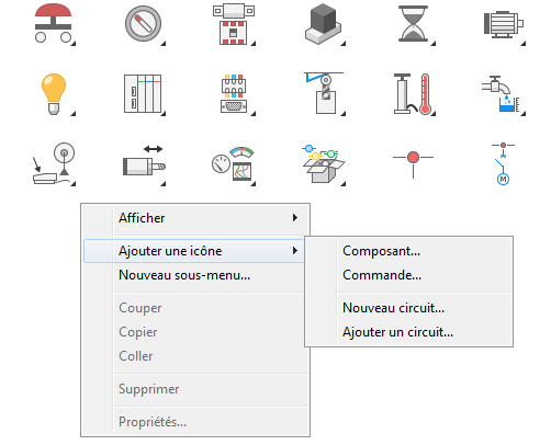 Remarque : Vous pouvez aussi cliquer avec le bouton droit de la souris sur un espace vide et choisir Ajouter une icône Ajouter un circuit.