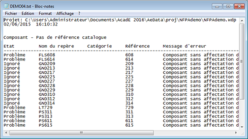 Utilisez cet outil pour identifier et résoudre certains types de problèmes liés aux composants et aux fils. Le rapport inclut les types de problèmes suivants :