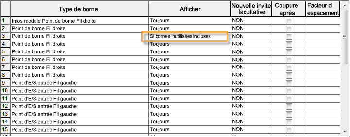 Inclut les bornes définies sur Si bornes inutilisées incluses dans la définition de base de données API pour le module correspondant.