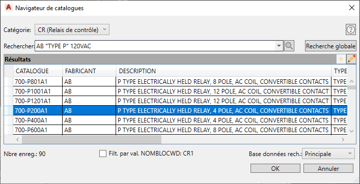 AutoCAD Electrical toolset se sert d'une relation père/fils pour les composants schématiques. Le symbole de bobine père et les symboles de contact fils représentent une bobine de relais dotée d'un certain nombre de contacts. Lorsque le symbole de bobine père est inséré, un repère de composant unique lui est affecté. Lorsque les symboles de contact fils sont insérés, le fils est relié au père et le repère père affecté au symbole fils.