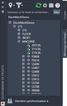 Rafraîchit l’arborescence des composants et les volets Détails et Connexions en fonction des données du AutoCAD Electrical toolset.