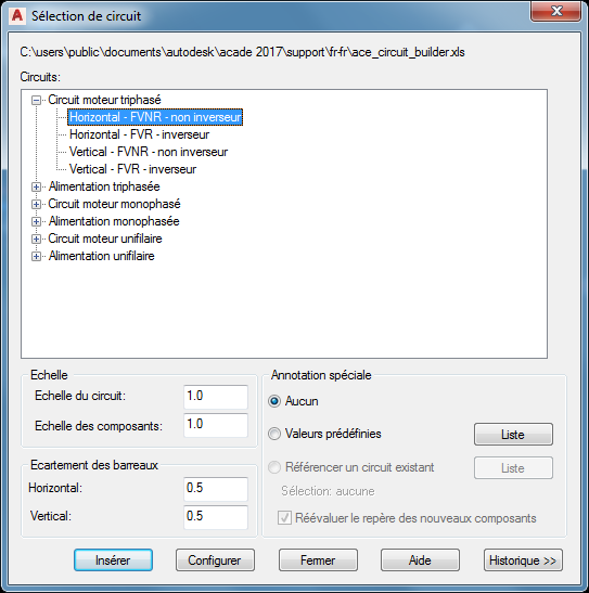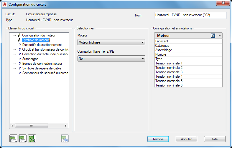 Utilisez le Générateur de circuits pour insérer et configurer un circuit moteur triphasé.