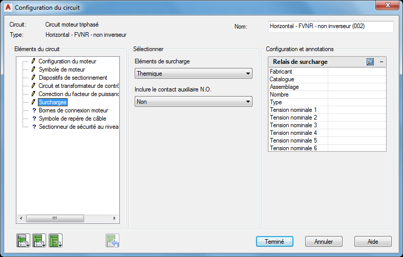 Dans la section Sélection, sélectionnez Eléments de surcharge: Thermique,