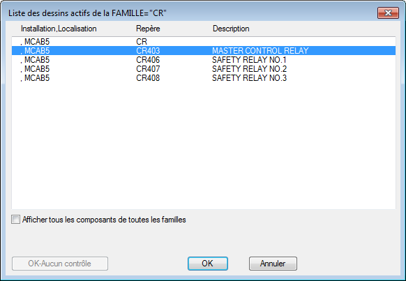 Affectez le nom de repère en cliquant sur Père/Fils de même père et en choisissant le père dans le dessin. Ou cliquez sur le dessin ou le projet à sélectionner dans une liste de composants avec le même nom de famille.