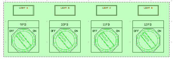 Sélectionnez les lumières du bouton poussoir A à D (y compris tout le graphique et le texte) (sélectionnez les objets un à un ou par fenêtre), puis cliquez avec le bouton droit de la souris