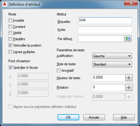 - Entrez ATTDEF à l'invite de commande pour insérer des objets de définition d'attribut.