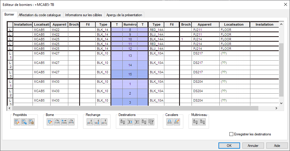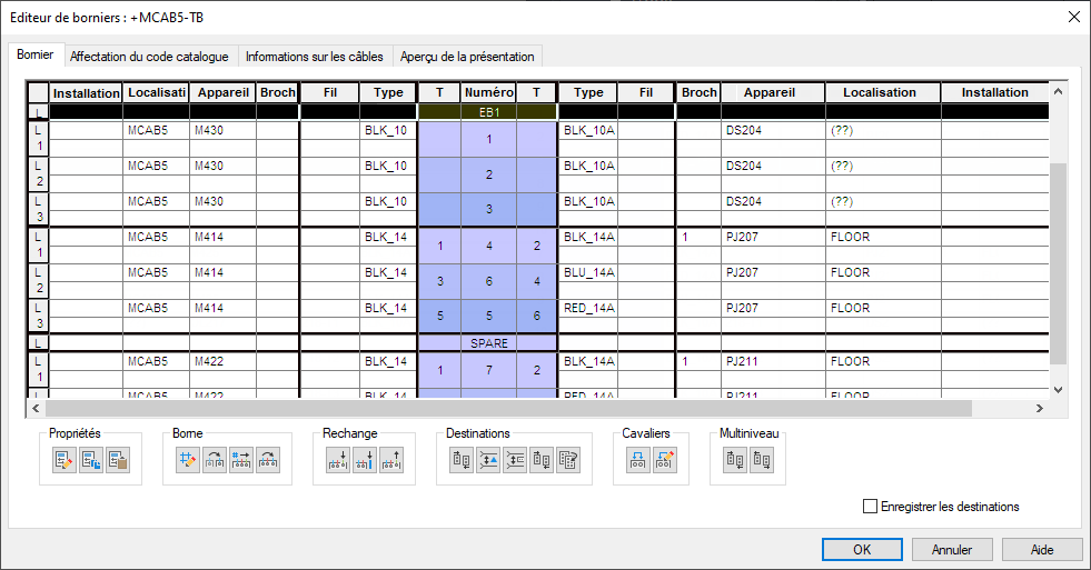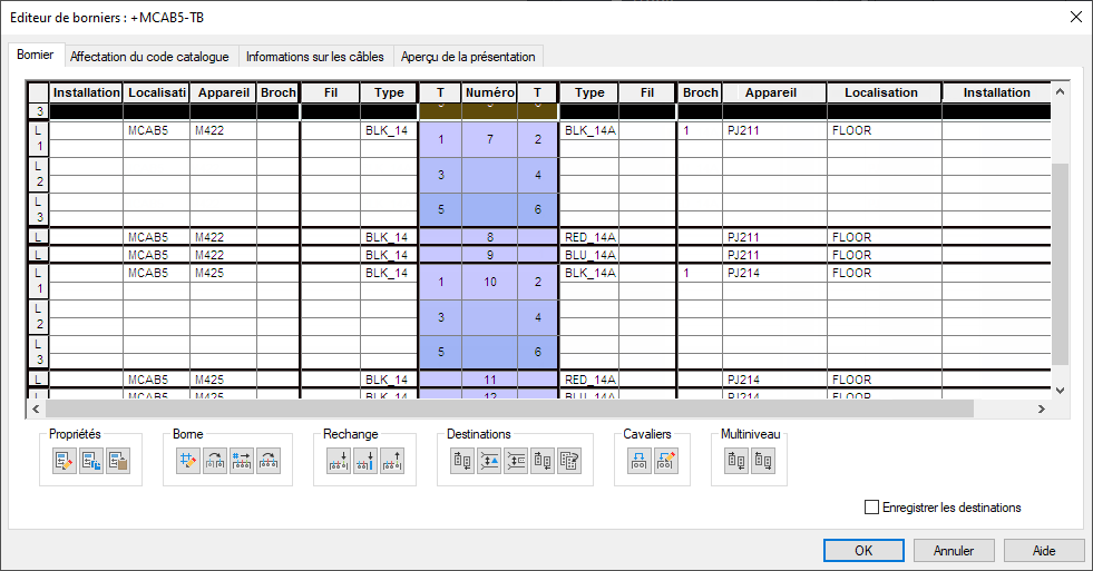 Utilisez l'Editeur de borniers pour gérer les bornes, modifier les propriétés des bornes, associer les bornes et insérer le bornier graphique.