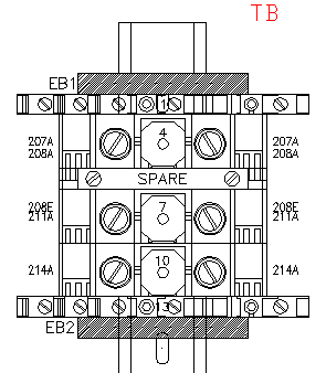 Le bornier à modifier, "TB", est déjà placé sur le dessin. Effectuez un zoom avant sur le bornier "TB" pour avoir un aperçu.