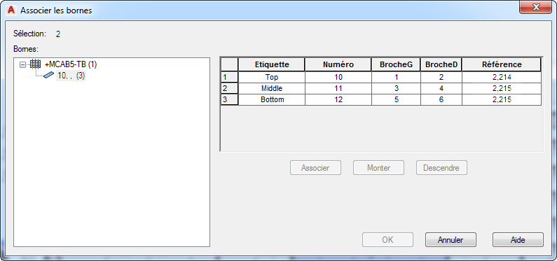 Dans la boîte de dialogue Editeur de bornier, sélectionnez les bornes 11 et 12 de la grille.