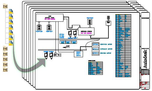 Un projet correspond à un jeu de dessins électriques étroitement liés. Le fichier de projet répertorie les noms des fichiers de dessin AutoCAD qui composent le jeu de dessins. Vous pouvez créer autant de projets que vous le souhaitez, mais un seul projet est actif à la fois.