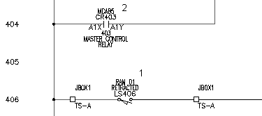 Sélectionnez le composant interrupteur de fin de course (qui devrait être ouvert), situé près du fil chaud au niveau de la référence de ligne 406 (1)