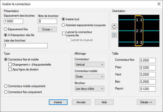 Spécifiez le point d'insertion ou [Z=zoom, P=panoramique, X=intersection des fils, V=horizontal/vertical, TAB=basculer] :