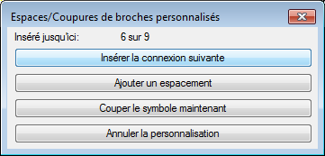 La boîte de dialogue affiche la broche de connecteur qui a été insérée jusqu'ici. Continuez à cliquer sur Insérer la connexion suivante jusqu'à ce que six connexions sur les neuf aient été placées.