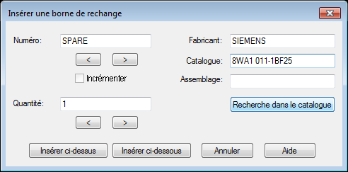Entrez le nombre ou le texte à utiliser pour la première borne de rechange. Si vous choisissez de ne pas incrémenter le nombre, la valeur est utilisée pour toutes les pièces de rechange ajoutées lors de cette opération.