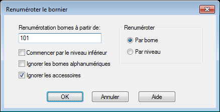 Niveau : applique une renumérotation à toutes les bornes d'un niveau et au premier niveau des bornes multiniveau, puis au deuxième niveau, etc.