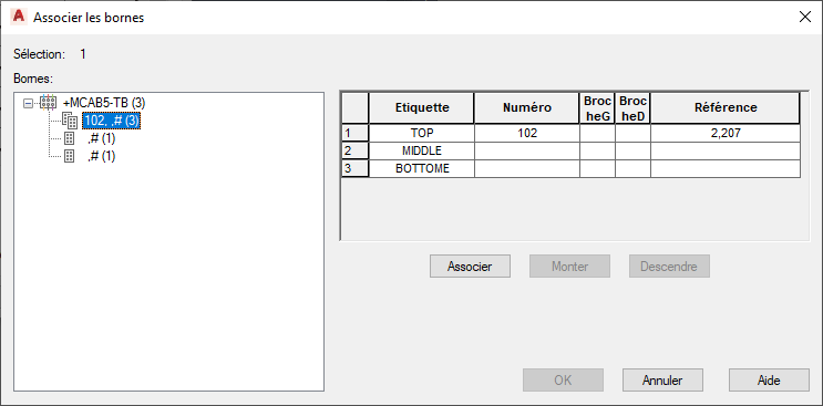 Sélectionnez le bornier à modifier dans la boîte de dialogue Sélection de bornier et cliquez sur le bouton Modifier.