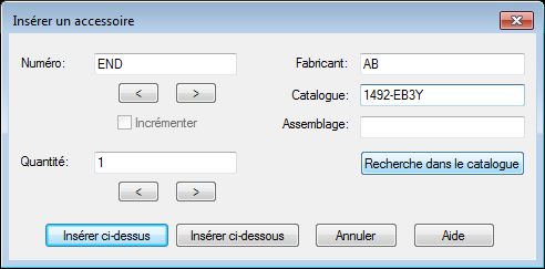 Cliquez sur dans la section Rechange pour insérer un accessoire.