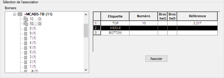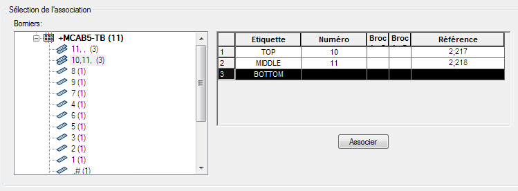 Le niveau du milieu se met alors à jour avec le numéro de la borne dans la grille, dans la section Association active de la boîte de dialogue.