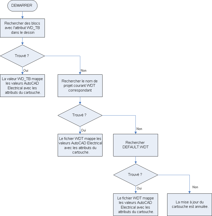 Lors de la mise à jour des cartouches, AutoCAD Electrical toolset suit cette séquence pour déterminer la méthode à utiliser.