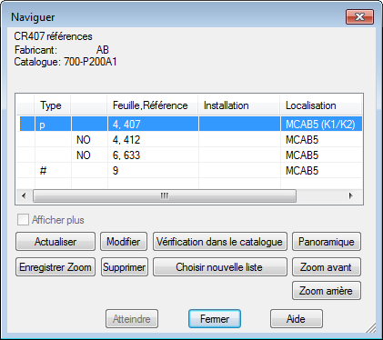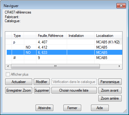 Toutes les instances de CR407 apparaissent dans la boîte de dialogue Naviguer.