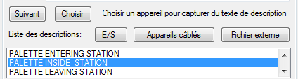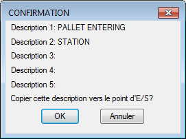 Sélectionnez la description en surbrillance, PALLET INSIDE STATION, et cliquez ensuite sur OK.