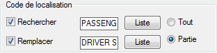 Sélectionnez Remplacer, puis entrez SIEGE CONDUCTEUR dans la zone de texte.