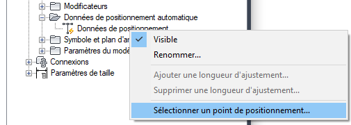 Option Sélectionner un point de placement dans le menu contextuel Données de positionnement