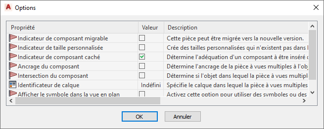 Pour obtenir une description de ces paramètres, reportez-vous à la rubrique Comportements à l'insertion d'un composant paramétrique.