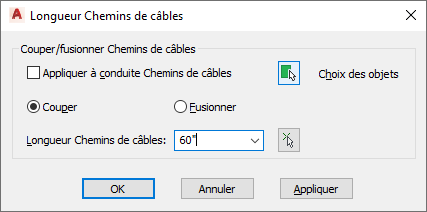 Boîte de dialogue Longueur du chemin de câbles