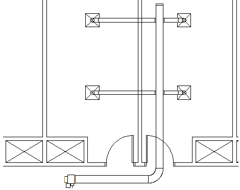 Vous pouvez déplacer les segments de gaine, les raccords de gaine et les pièces à vues multiples HVAC à l'aide des poignées d'emplacement, comme illustré ci-dessous.
