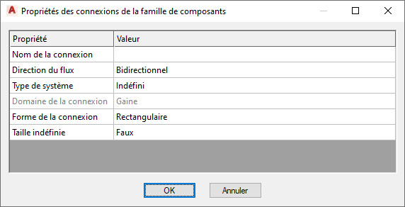 La boîte de dialogue Propriétés des connexions de la famille de composants s'affiche.