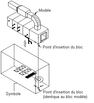 Pour veiller au contrôle correct de l'affichage de votre symbole à l'insertion dans le dessin, dessinez la géométrie du symbole sur le calque 0, choisissez DUBLOC pour la couleur et le type de ligne et DUCALQUE pour l'épaisseur de ligne. Le point d'insertion ou point de base sert de référence pour le positionnement du bloc au moment de son insertion. Le point d'insertion du bloc schématique doit correspondre au point d'insertion du bloc modèle 3D qu'il représente. Lorsque vous placez la pièce à vues multiples dans un dessin, tous les blocs associés font partie d'un seul objet. Par conséquent, vous cherchez à préserver un point d'insertion commun.