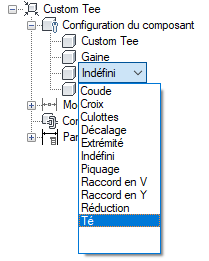Pour définir le type de composant, sous Configuration du composant, cliquez avec le bouton droit de la souris sur Indéfini, cliquez sur Modifier, puis sélectionnez Té.