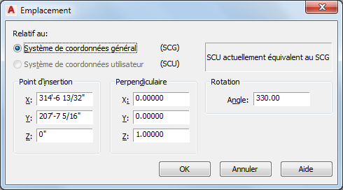 | repositionner la ligne schématique | entrez les nouvelles coordonnées sous Point d'insertion. |
