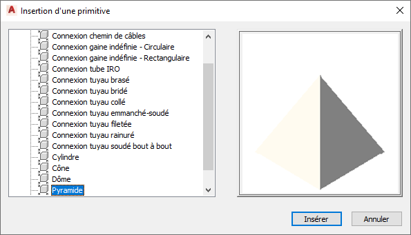 Boîte de dialogue Insertion d'une primitive