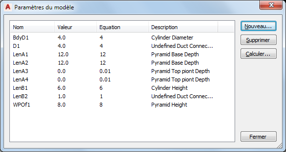 Dans les paramètres du modèle de votre composant, les descriptions des paramètres provenant d'une primitive incluent le nom de celle-ci. Cela permet de distinguer plus aisément les paramètres issus de primitives ou d'un ensemble de primitives et ceux issus de fonctions manuellement insérées dans le modèle du composant.
