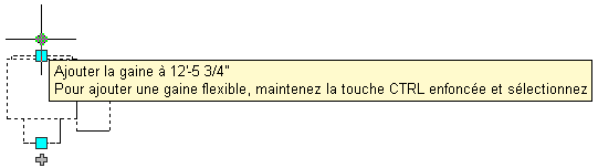 | dessiner une gaine à partir de n'importe quel point | Sélectionnez l'outil 1D de la palette d'outils des gaines située dans le groupe de palette d'outils HVAC. A faire : Pour plus d'informations, reportez-vous à la rubrique Dessin d'une conduite de gaine.