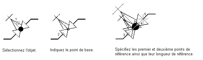 Vous pouvez redimensionner un symbole schématique avec une référence. Pour cela, vous devez spécifier la longueur actuelle du symbole en tant que référence de la nouvelle longueur. Par exemple, pour allonger d'une unité l'un des côtés d'un symbole schématique mesurant 2.5 unités de long, vous devez définir 2.5 en tant que longueur de référence et 3.5 en tant que nouvelle longueur. Vous pouvez également mettre le symbole à l'échelle en spécifiant un point de base et deux points de référence, puis en faisant glisser le symbole.