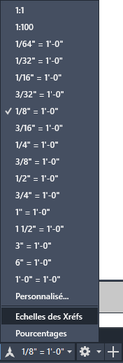 Dans l'espace papier, l'échelle de fenêtre et l'échelle d'annotation sont synchronisées. Lorsque vous modifiez l'échelle de fenêtre, l'échelle d'annotation s'aligne sur la valeur définie. Vous pouvez toutefois modifier l'échelle de fenêtre sans affecter l'échelle d'annotation en effectuant un zoom avant et un zoom arrière sur la fenêtre à l'aide de la molette de la souris ou des options de zoom.