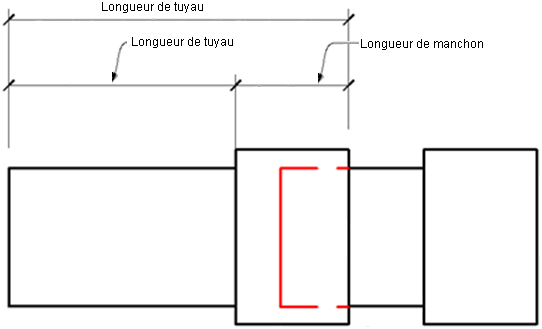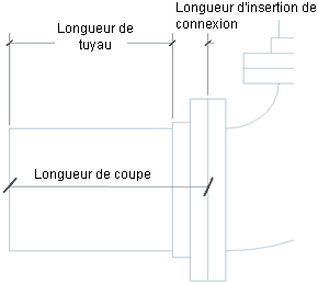La longueur de coupe correspond à la distance entre les connexions à l'intérieur d'un segment de tuyau. Le diagramme suivant fait la différence entre la longueur de tuyau et la longueur de coupe en fonction de la longueur d'insertion de connexion.