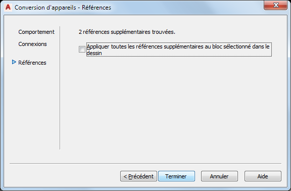 Vous pouvez convertir un bloc AutoCAD, un bloc à vues multiples ou une pièce à vues multiples en appareil. Comme les appareils sont des objets basés sur des styles et comme ce type d'objet est défini par un style, cette opération crée également un style d'appareil associé.