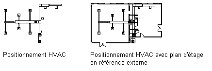 Chaque fois que vous ouvrez un dessin, le logiciel recharge les dessins référencés qui lui sont attachés de façon à refléter les modifications apportées à ceux-ci au sein du dessin de votre système de construction. Si vous attachez, par exemple, un plan d'étage architectural en tant que Xréf et que l'architecte modifie ensuite l'emplacement de l'installation mécanique, les changements apportés au plan d'étage seront automatiquement répercutés dans le dessin du système de construction la prochaine fois que vous l'ouvrirez. Il est possible également de recharger des Xréfs sur demande et de vérifier les interférences entre les objets du système de construction et les éléments de structure en appliquant la mise en surbrillance de détection des interférences à votre dessin.
