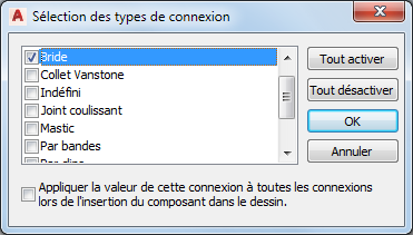 Remarque : Par défaut, les connexions sont de type indéfini. Ce type permet de créer la connexion appropriée pour tous les types de connexion à l'insertion dans un dessin.