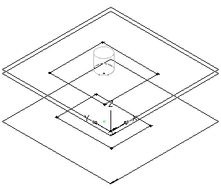 - Dans la zone de modélisation, à l'aide de la fonction d'accrochage aux objets, sélectionnez le point situé au centre de la face de dessus du diffuseur, entrez un rayon de 3" (76 mm) et appuyez sur la touche Entrée.