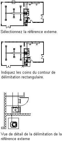 Après avoir attaché ou superposé une référence externe, vous pouvez définir un contour de délimitation afin d'afficher uniquement une partie du dessin Xréf.