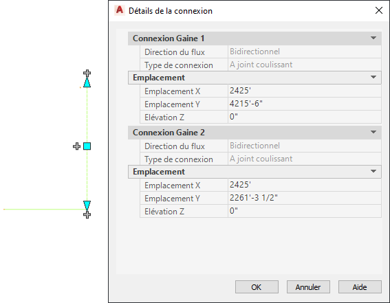 Cette procédure permet de visualiser les propriétés relatives à la connexion de gaines, raccords de gaines, gaines flexibles, tuyaux, raccords de tuyauterie, tuyaux flexibles, tubes IRO ou raccords de tube IRO dans la fiche de travail Détails de la connexion.
