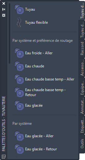 Vous pouvez créer des outils pour les commandes dans Jeu d’outils AutoCAD MEP 2027.